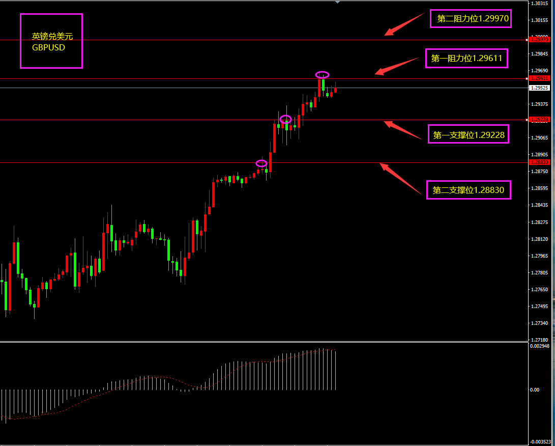 技术点评:天图英镑触及压缩三角形底部而形成大阳线反弹,天图3连阳,底部多头强劲,但3连阳之后可能面临小幅度回调,但回调之后继续保持着逢低看多为主。小时图英镑晚间连续阳线上涨,MACD重回0轴之上,多头占优,日内英镑保持以震荡以及震荡上行为主。