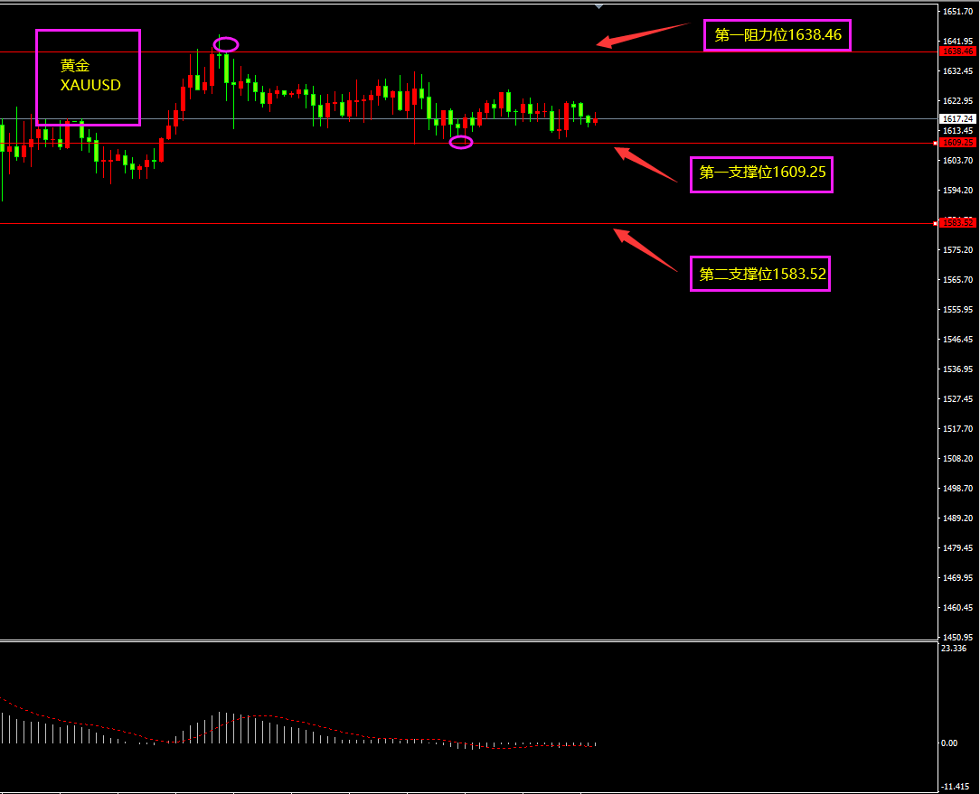 策略分析:第一、二支撑位附近轻仓看多,如有大阴线跌破第二支撑位则转为观望。