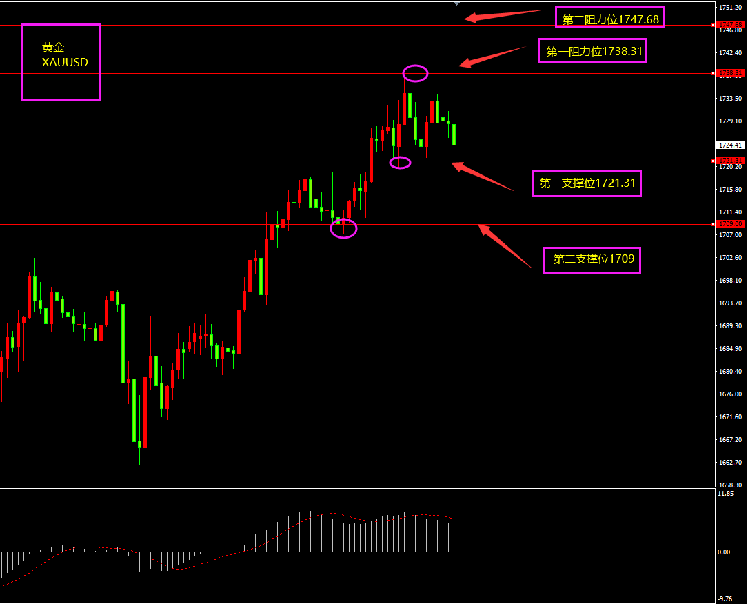策略分析:第一、二阻力位附近轻仓看空,第二支撑位附近轻仓看多。