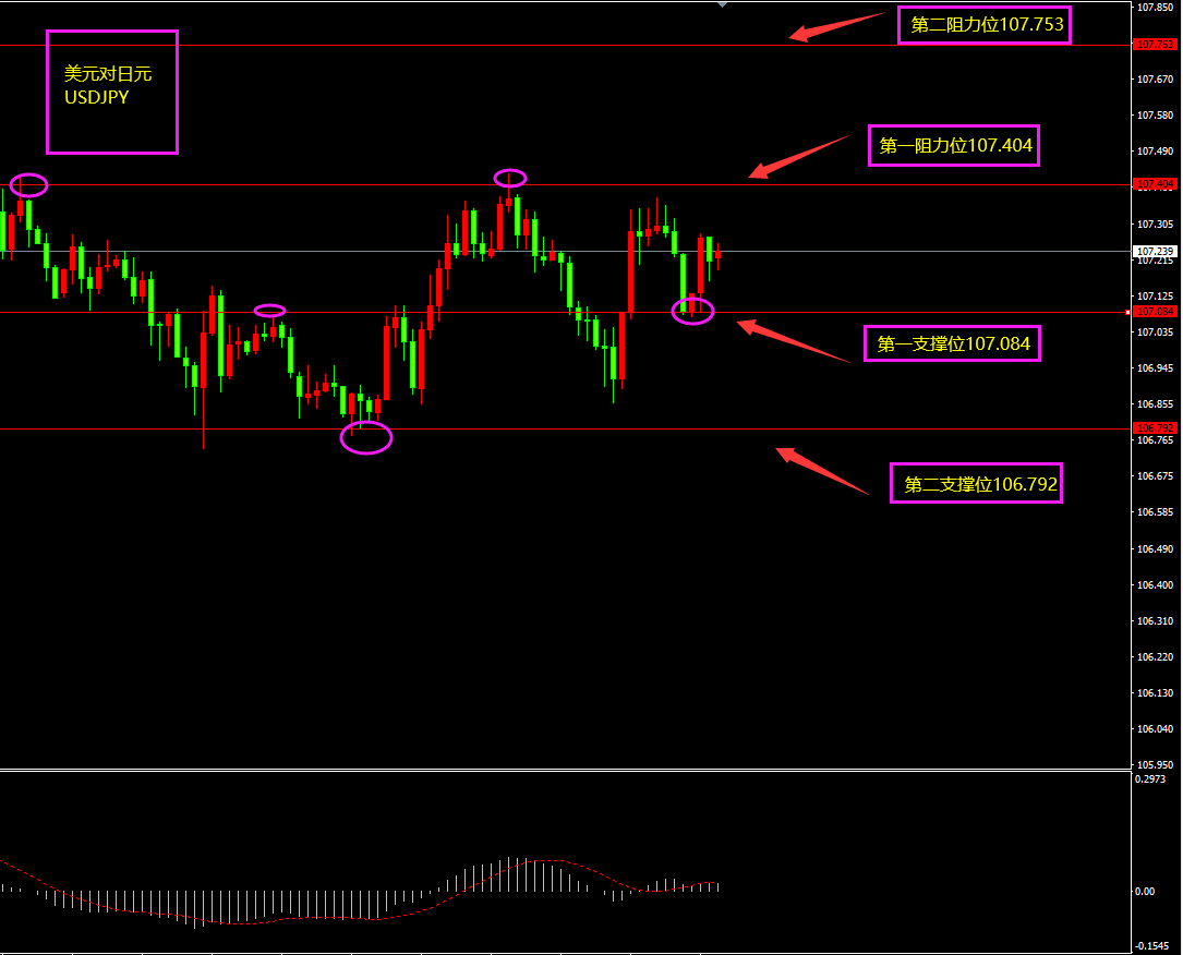 策略分析:第一、二支撑位附近轻仓看多,如有大阴线跌破第二支撑则转为观望。