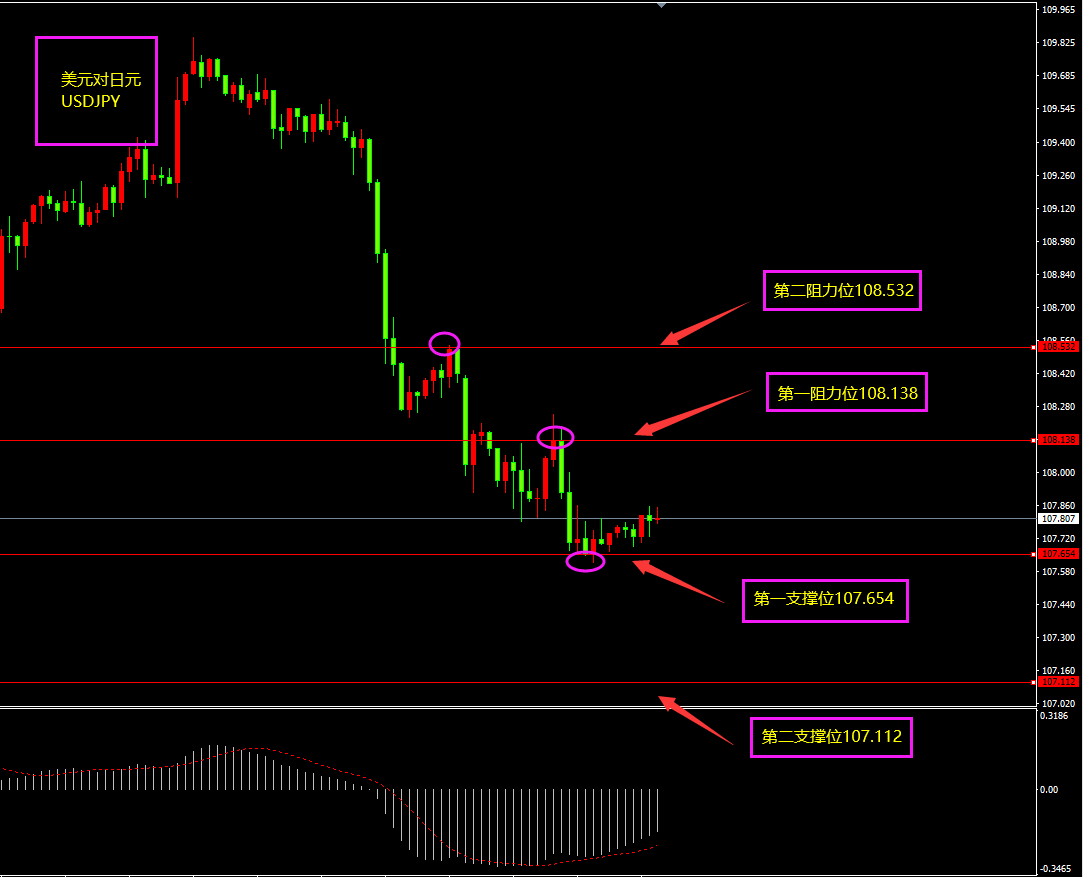 趋势分析:美指下跌带动美日下行。日本数据利空美日。