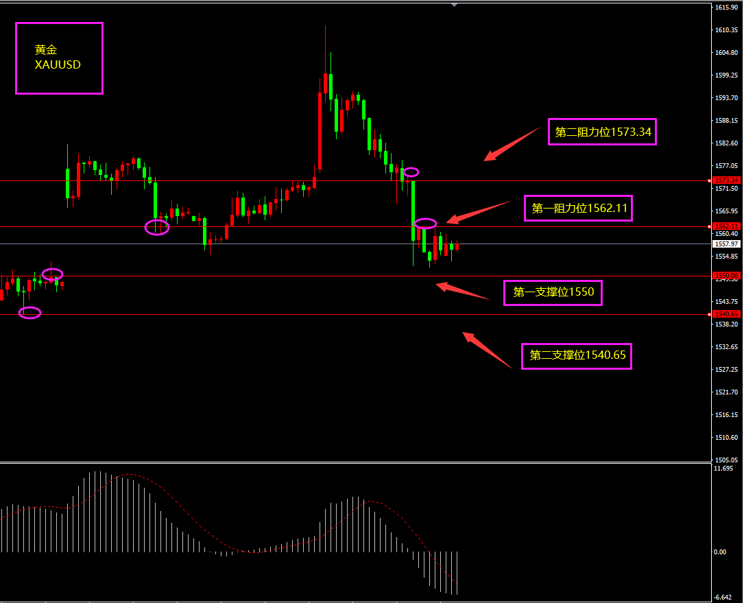 策略分析:第一支撑位附近轻仓看多。如有大阴线跌破第一支撑位则转为观望。