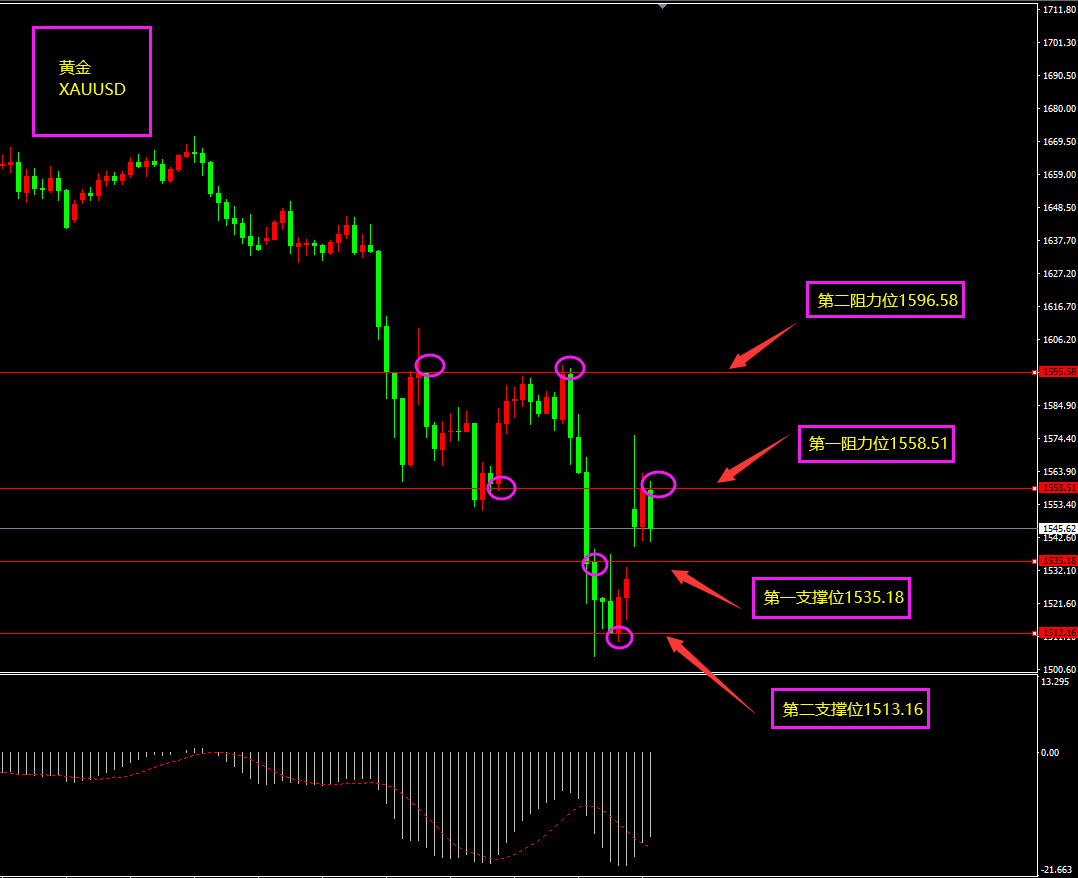 关注点:黄金上方阻力位1596.58