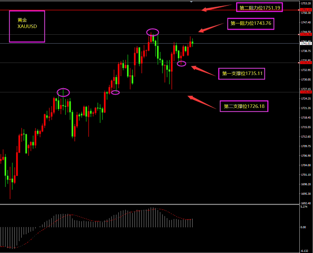 策略分析:第一、二支撑位附近轻仓看多,如有大阴线跌破第二支撑则转为观望。